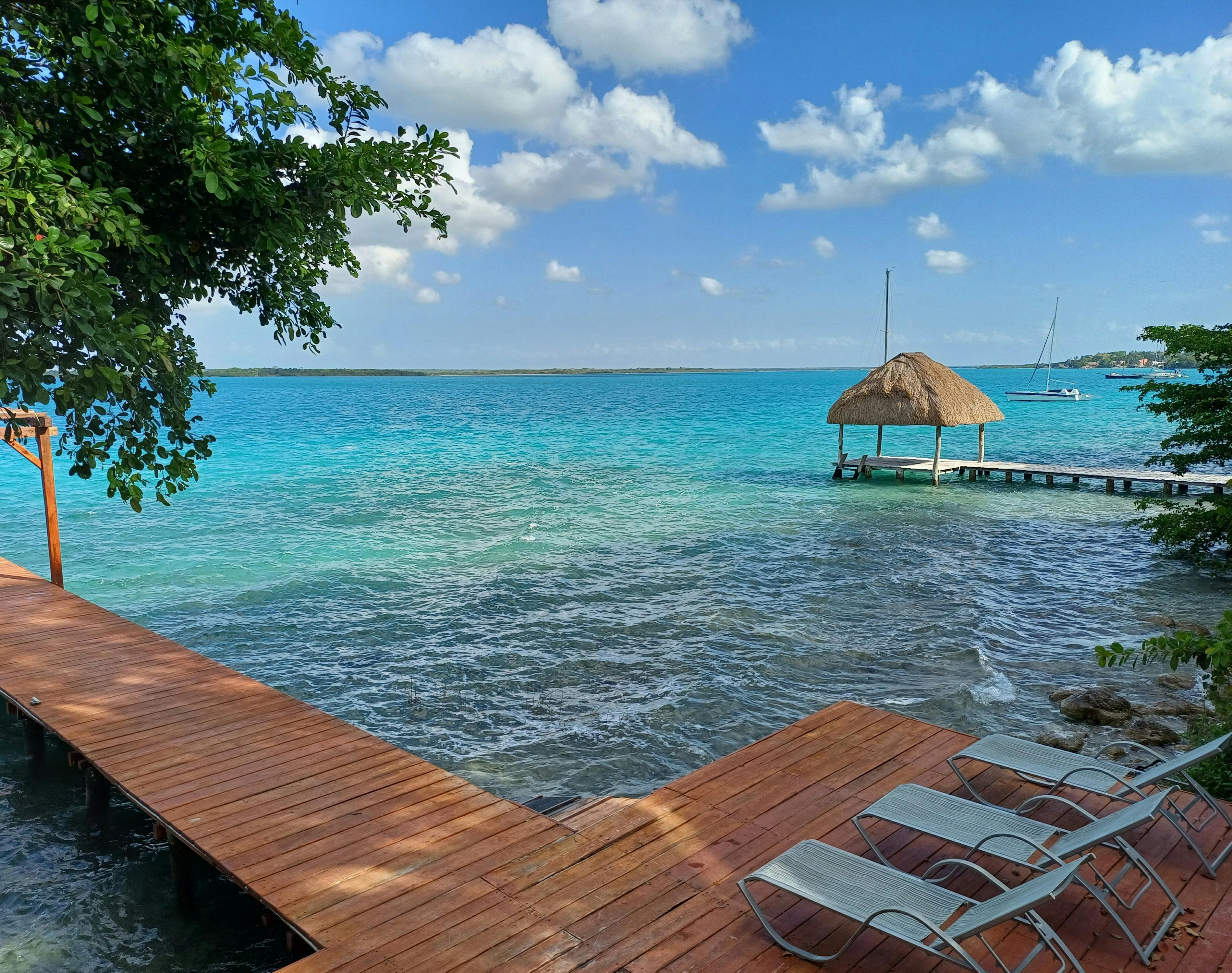 An exclusive and comfortable complex equipped with satellite wifi, Jacuzzi, terrace/deck, shaded dock, second level terrace overlooking the lagoon, terraces and sundeck in access to the lagoon, central plaza with furniture and umbrellas, barbecue, kitchen, double kayaks, parking inside the property and security personnel 24 hours.
